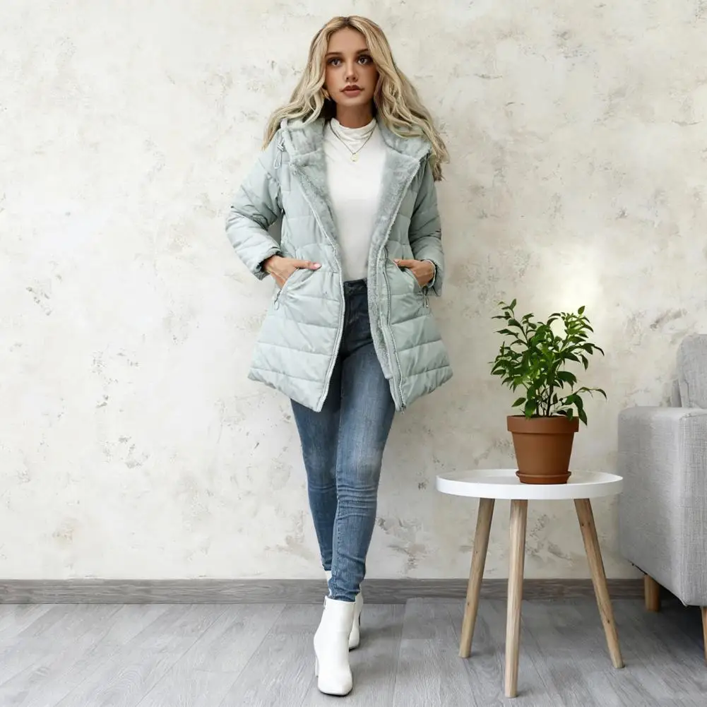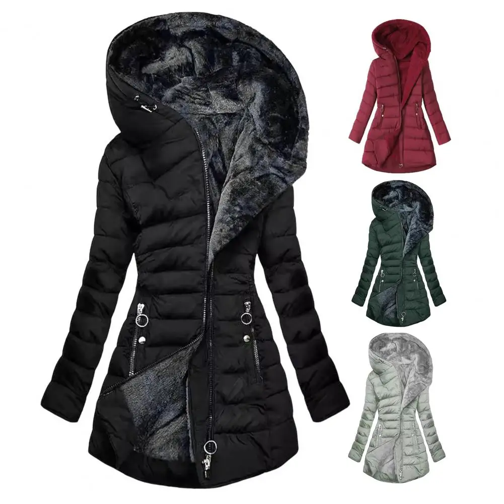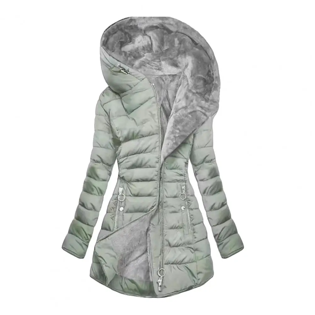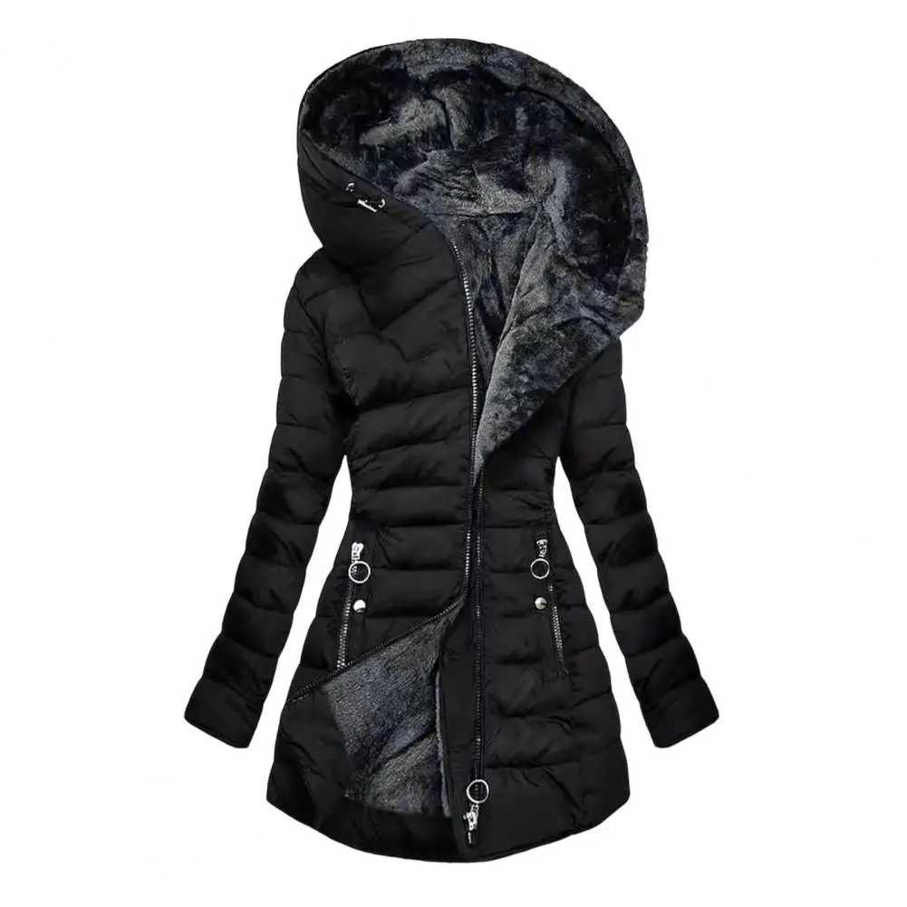 Dames Winter Winddichte Gewatteerde Jas – Dik, Fleece Gevoerd, Donsjacks, Met Rits, Capuchon en Zakken